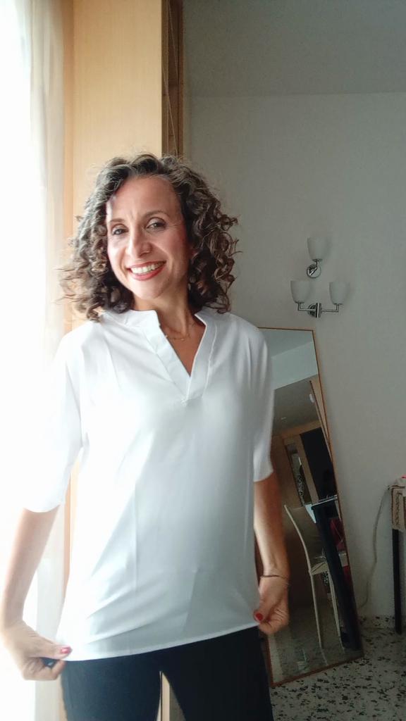 BLŮZA elegantní halenka s výstřihem do V. Zaoblené krátké rukávy a rovný střih. K dispozici v 8 barvách a ve velikostech S až XXL. Materiály: polyester. Je tam štítek se složením a pokyny pro praní.. Měkká tkanina. Pečlivé švy, žádné vady ani visící nitě. Žádný zápach. Dorazil do Itálie se sledovanou zásilkou za 16 dní. Balení: plastový sáček. Doporučený nákup 👌