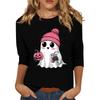 Women's Fashion Casual Three-Quarter Sleeve Halloween Print Round Neck T-Shirt Top