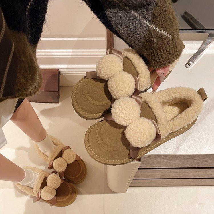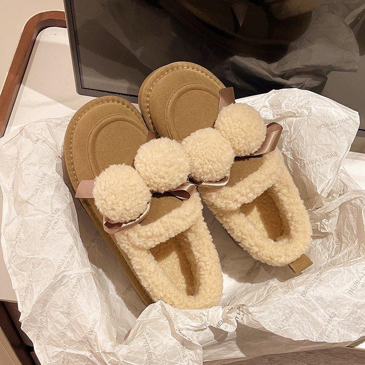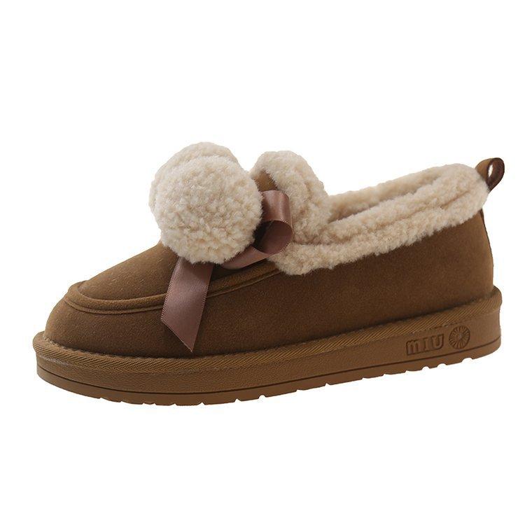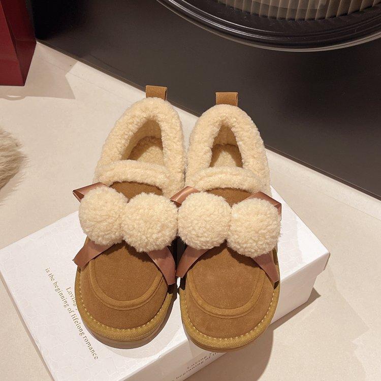 Platform Boken shoes women's autumn and winter 2025 new velvet one-pedal loafers fluffy bean shoes Boken cotton shoes