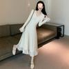 Knitted white dress waist coffee break beautiful high sense party party dress autumn