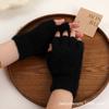 Winter Two Finger Touchscreen Rib Stitch Jacquard Plush Warm Knit Student Thick Half Finger Gloves