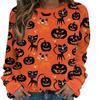 Fashion Women Halloween Print Party Round Neck Long Sleeve Socket Head Tops