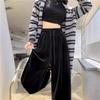 New Autumn Winter Gold Velvet Wide-leg High-waist Drawstring Loose Slim Versatile Casual Trousers