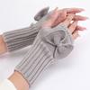 Korean Knitted Gloves Women's Bow Hand Warmer Winter Gloves Fashion Black Pink Knitted Thicken Mitten Fingerless Mittens