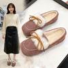 Bow-tie fluffy shoes for women's autumn and winter outer wear, new velvet one-pedal pregnant women's bean shoes, warm cotton shoes