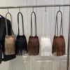 Korejský styl semišová kabelka PU kůže stahovací kbelík taška módní střapec taška přes rameno ženy