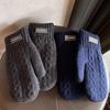 Daily Thickened Fleece Knitted Gloves Windproof Coldproof All Finger Gloves Solid Color Warm Gloves for Women Men