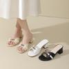Small gold buckle crocodile pattern Korean version of high-heeled sandals for women's summer wear thick heels and soft soles, one-word beach sandals