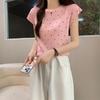 Polka Dot Short-sleeved T-shirt for Women's Summer New Design Slim Round Neck Straight Shoulder Slim Short Top