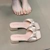 Baotou slippers spring wear 2025 new Korean version bow pearl flat bottom soft bottom mouth cool retro half slippers