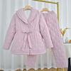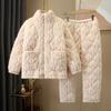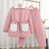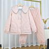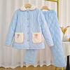 Quilted Women's Winter Pajamas Set: Three-Layer Thick Long-Sleeve Cotton Jacket with Plush Lining