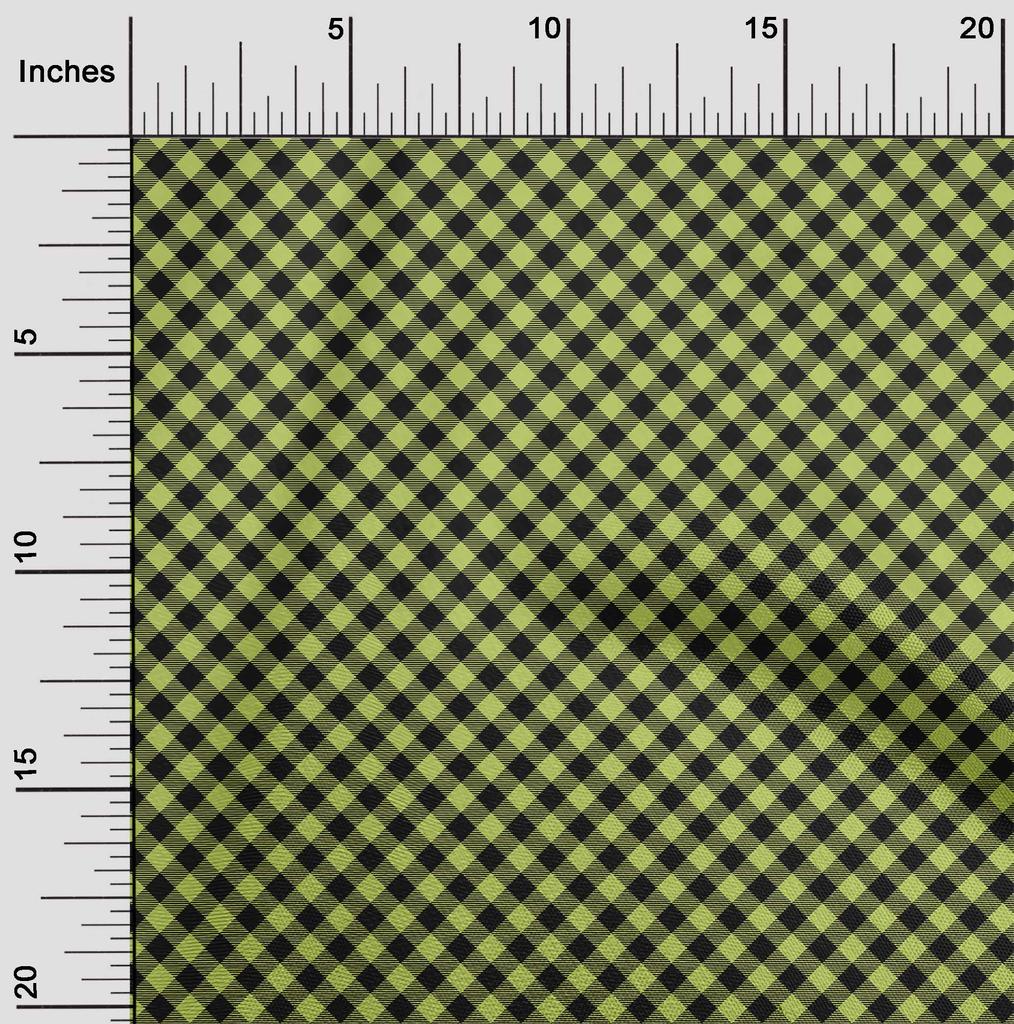 oneOone Cotton Flex Lime Fabric Check Sewing Material Print Fabric By The Yard 40 Inch