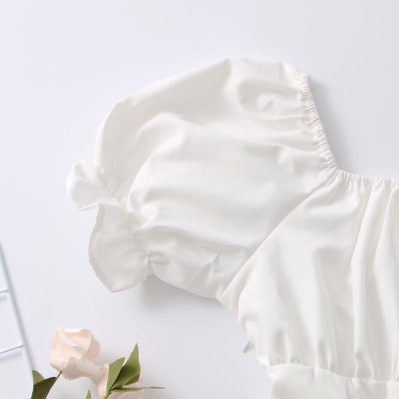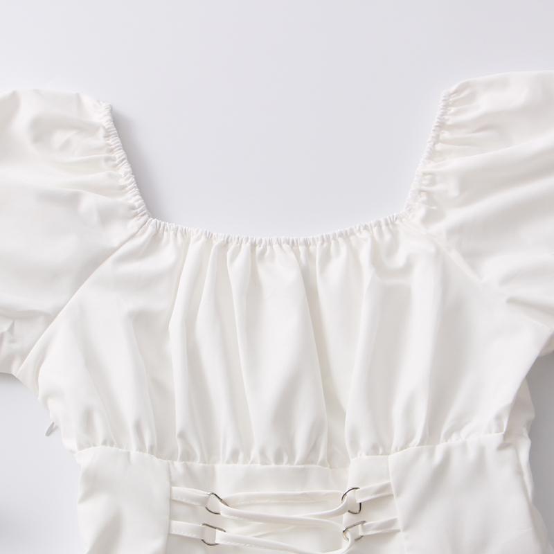 Women's White Dress Summer Elegant Vintage Kawaii Puff Sleeve Midi Dress Square Collar Bandage Sundress Goth Outfits