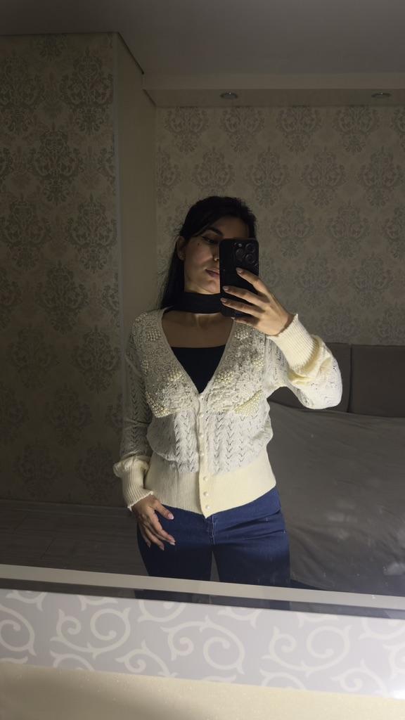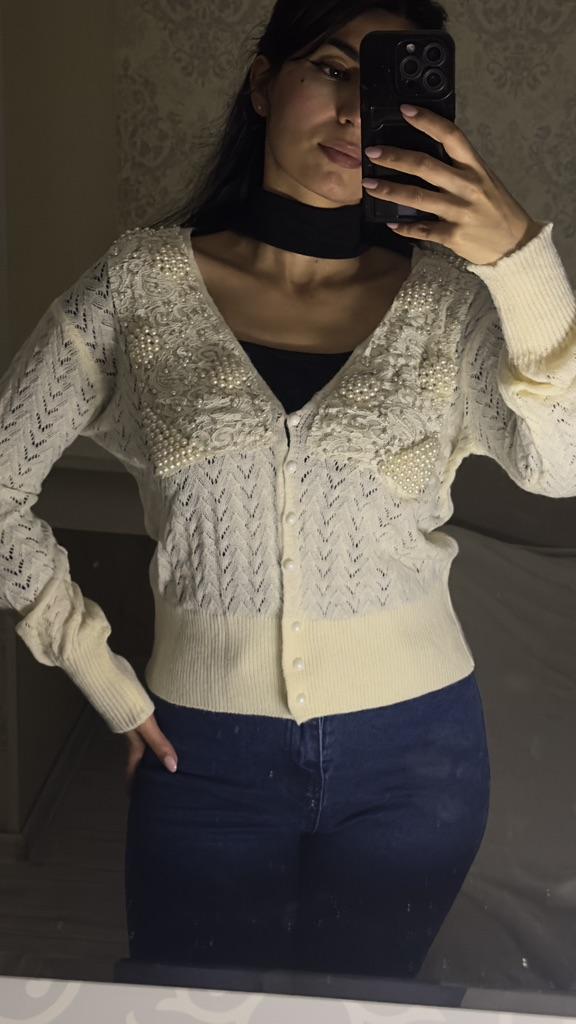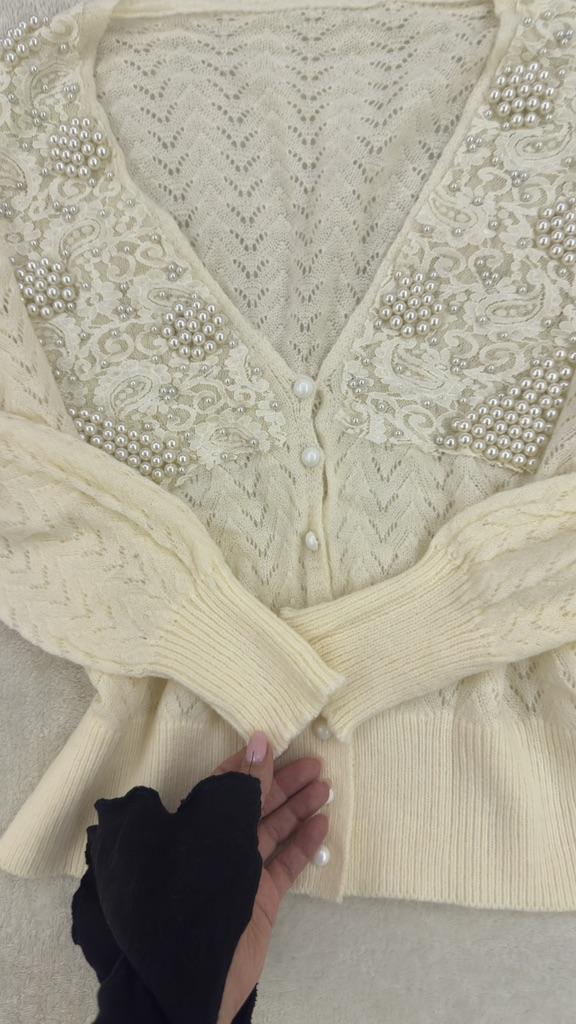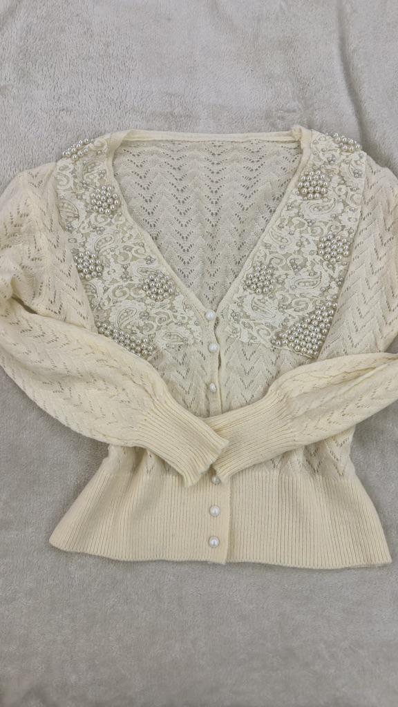 Spring and Autumn Women's Knitwear Temperament Celebrity Fresh Wisp Hollow Pearl Inlaid Cardigan Sweater Jacket Women Loose Tops