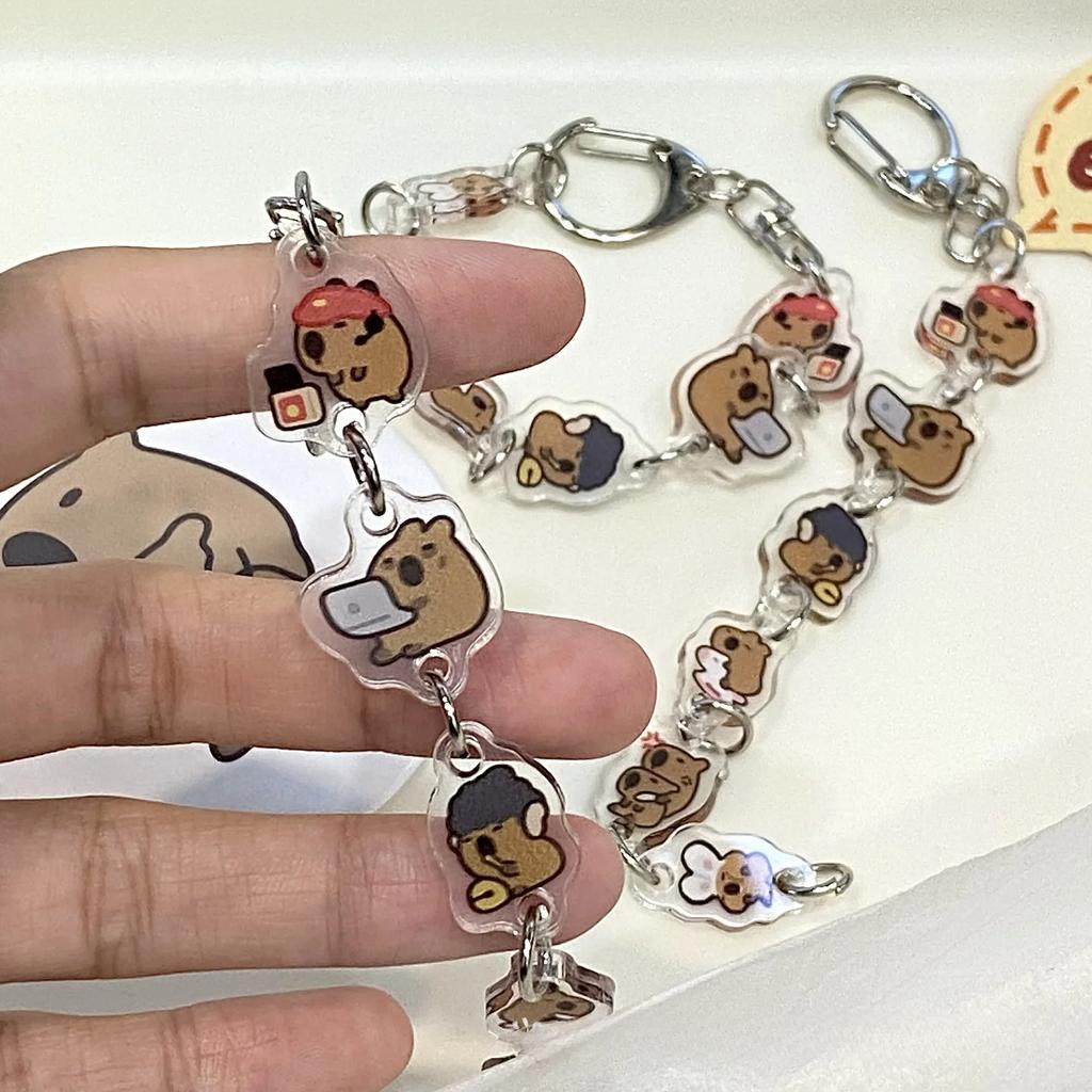 1Pc Cute Cartoon Capybara Transparent Plastic Mobile Phone Lanyard with Metal Buckle Kawaii Girl Backpack Pendant Keychain Charm
