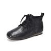 Johnature Genuine Leather Pleated Short Boots Round Toe Soft Sole Lace Up Versatile Women's Shoes