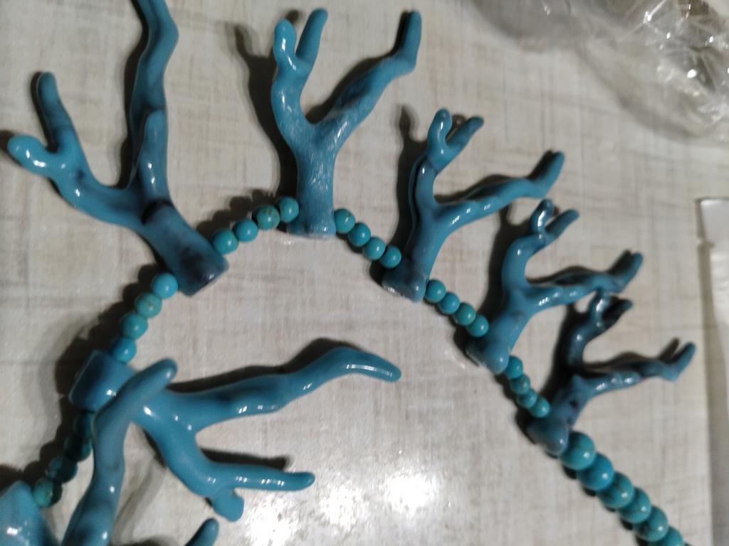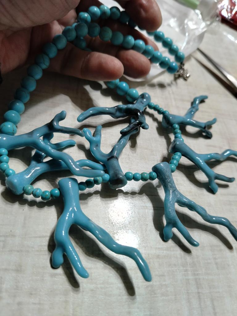 For such a price, it's okay. The corals are lightweight plastic, the beads are also made of plastic I think but painted to look like natural stone. I mixed them with beads of irregular-shaped silvery pearls, I think it looks not bad