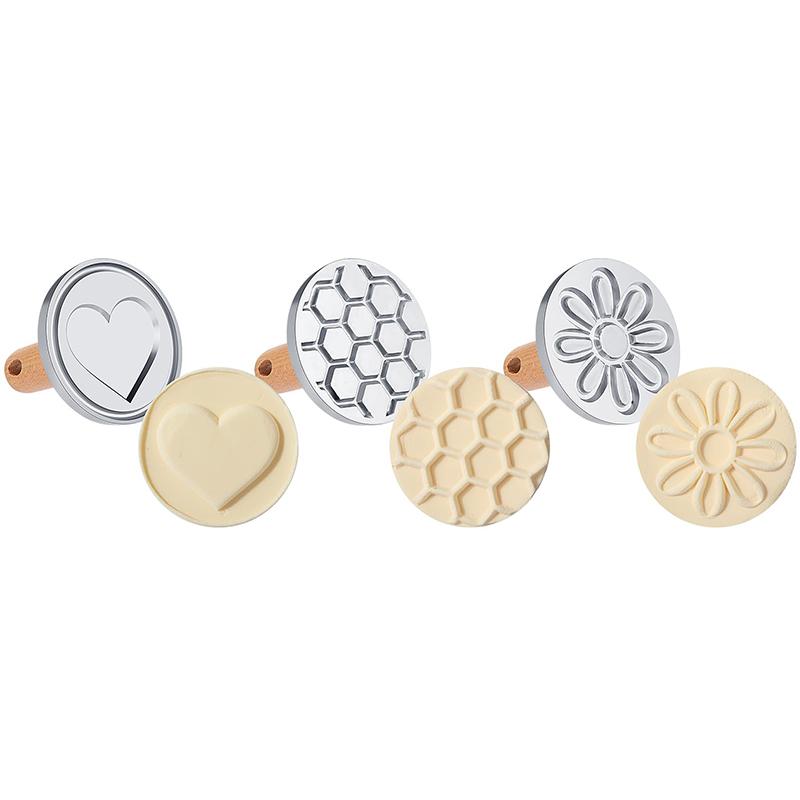 3 Pcs Cookie Stamps For Baking Metal Press With Wooden Handle Cookie Maker Decorating Supplies Diy Baking Cake Pastry