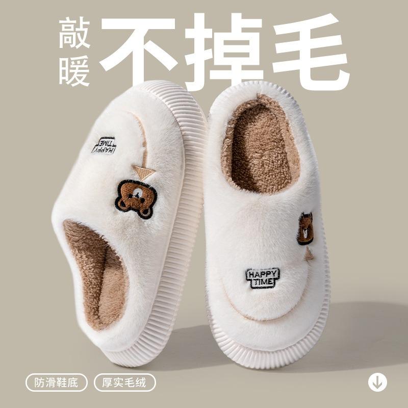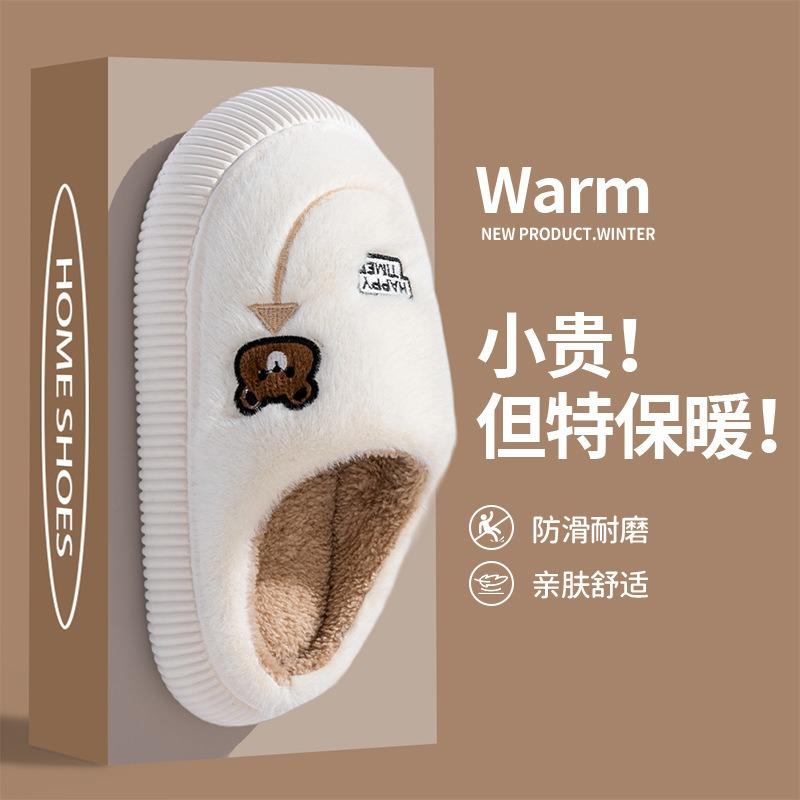 Cotton Slippers Men's Autumn and Winter Indoor Home Thick Bottom Non-slip Warm Plush Couple Slippers Women's Winter