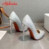 Fashion Aphixta 12cm Super High Stiletto Heels Pumps Women Shoes Bling Sequined Leather Pointed Toe Wedding Dress Thin Heel Shoes Woman