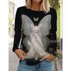 2025 Autumn and Winter Women's Long Sleeve 3D Printed Cute Cat T-Shirt, Streetwear, Round Neck Long Sleeve