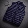 This sporty sleeveless down vest is designed for those who value lightweight comfort and style. Featuring a thin outer layer and filled with premium duck down, it offers excellent insulation without the bulk. The vest includes a convenient zipper closure and a stand neckline for added warmth and protection against the elements. Crafted from durable polyester material, it is perfect for layering over your favorite outfits during outdoor activities or casual outings.