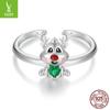 BAMOER 925 Sterling Silver Classic Reindeer Adjustable Ring Green Zircon Opening Ring for Women Christmas Gift Jewelry