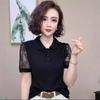 Lapel Short-sleeved T-shirt for Women In Summer New Scarf Printed Temperament Versatile Slim Lapel Top