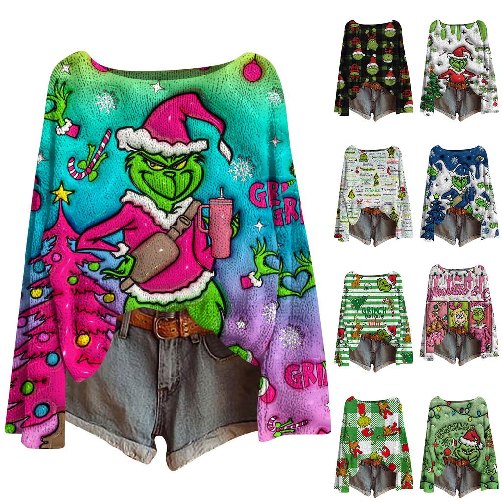 Women's Fashion Christmas Print Lightweight Sweater Casual Long-Sleeve Knit Pullover Top