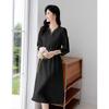 Johnature Women High Waist Casual Dresses Stand Nine Sleeve Solid Color Soft Cloth Summer Loose A-Line Dress