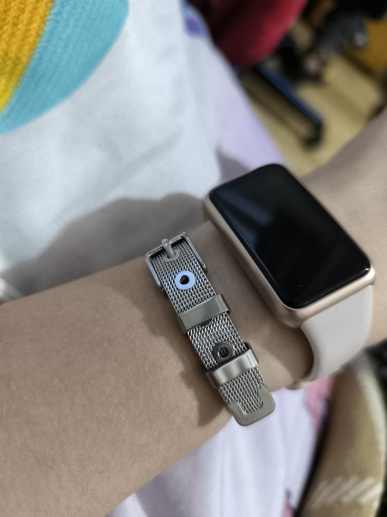 Le bracelet est superbe sur la main. La couleur est belle, se fixe facilement. Plus adapté aux mains fines. Emballé dans un petit sachet et un sac en tissu