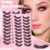 10 זוגות של ריסים מלאכותיים דגם שיער מטוגן רב שכבתי צלב עבה חיקוי ריסים לשיער מינק