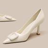 Women's Single Shoes Spring New Pointed Head Shallow Mouth Leather Rivets Metal Buckle Anti-slip Wear-resistant High Heels