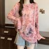 spring Summer flower printed Long Sleeve T-shirts Women's Casual oversized Thin Slightly Sun Protection Cover Tops White T Shirt