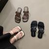 2024 slippers female summer wear new French fairy gentle matching skirt seaside beach soft flat bottom cover toe sandals