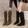Super Fire Boots Women's Thick Heel Pants Boots But Knee Brown Maillard Western Cowboy Knight Boots