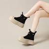 Fashion New 5cm Fashion Women Chunky Platform Ankle Boots Spring Autumn Genuine Leather Pleated Slip On Thick Sole Casual Short Boots