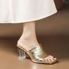 Fashion Women Wear Summer Fashion New High-heeled Cool Slippers with A Leather Block Heel Open Toe Single-toe Slippers