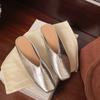 Fashion Elegant Soft Leather Mules Slippers Women Square Toe Inner Height Wedge Slide Sandals Summer Cozy Beach Designer Shoes for Women