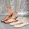 Fashion Bohemia Silver Decoration Nude Sandals Women 2025 Summer Round Toe Flat Heels Flip Flops Ankle Strap Sexy Beach Sandals Women