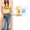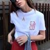 Summer New Product Women's Clothes Cotton Silm Straight round Neck Short Sleeve Cartoon Cat Print Washed T-shirt 6050358