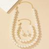 Korean Minimalist Freshwater Pearl Jewelry Set: Earrings, Bracelet, Necklace, Clavicle Chain in Retro Style for Women.