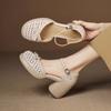 Color matching sandals women's summer simple temperament bag head empty thick heel women's shoes one-word buckle breathable punched sandals