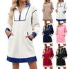 Women's Casual Loose Collar V-Neck Button Irregular Patchwork Top Women's Long Sleeved Dress