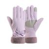 Women's Winter Ski Gloves with Bow Cute Velvet Thickened Windproof and Coldproof Outdoor Cycling Touch Screen Gloves