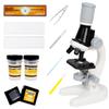 This is a microscope for children. It is suitable for observing plant cells, pollen, insect antennae, wings, etc. in independent research. Three levels of magnification can be switched: 100x, 400x, and 1200x. You can change the magnification of the objective lens by turning the revolver. By using the included smartphone holder, you can take pictures of the observations with your smartphone. You can set any smartphone with a width of 5.5cm to 9cm. You can adjust the focus and brightness by changing the angle of the arm, the height of the eyepiece, and turning on the light. The microscope comes with all the tools necessary for observation, and a sample specimen is included, so you can use it right away. It is also recommended as a birthday gift for children. It is also ideal for school independent research and nature observation. <Included items> Microscope, smartphone holder, collection bottle, tweezers, preparation, specimen box