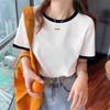 Color Blocking Round Neck Short Sleeved T-shirt for Women's Summer Base Slim Fit Short Student Top Trend Shirt