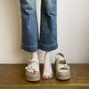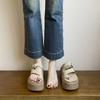 Fashion Low Sandals Woman Leather Low-heeled Rome Fabric PU Rubber Hoof Heels Low Sandals Woman Leather Low-heeled Rubber Rome PU Fabric