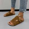Large size retro slippers women's summer wear new matte leather shoes one word cool slippers flat bottom