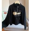 Plus Size Women Long Sleeve Hoodie Spring Autumn Loose Casual Oversized Lapel Zipper Patchwork Sweatshirt